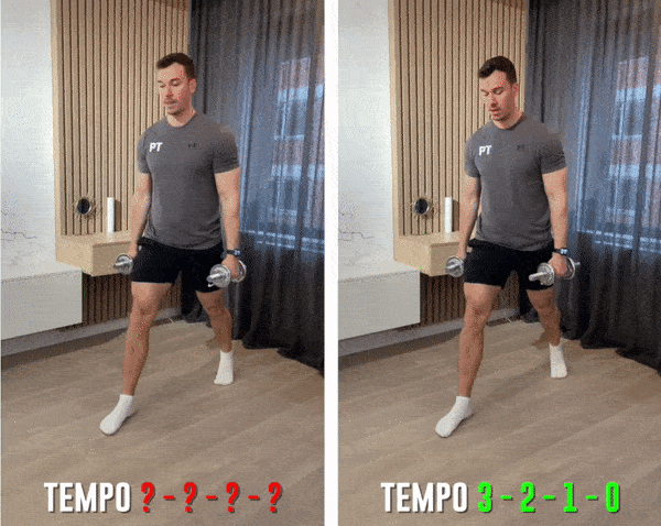 Omul obișnuit execută exercițiile (fie la sală, fie acasă) în mod tipic cu o viteză prea mare, concentrându-se mai mult pe terminarea repetărilor sau pe terminarea seriei cât mai rapid în cazul în care sunt deja obosiți, petrecând prea puțin timp cu mușchiul sub tensiune. Dacă în sală poți scăpa mai mult sau mai puțin cu așa ceva (până într-un anumit punct), acasă cu atât mai mult contează viteza de execuție și stilul de execuție, pentru a petrece cât mai mult timp cu mușchiul sub tensiune, care deja este mică datorită echipamentului limitat și greutăților mici. O fandare cu tempo executată cu coborât în 3 secunde, pauză 2 secunde în poziția de jos, și fără pauză în poziția de sus poate fi extrem de grea chiar și fără greutate adițională, pe când fandările executate doar ca să termini repetările mai repede, eventual adăugând și pauza sus (în comparație cu jos, unde este cea mai mare tensiune) le poți executa cu lejeritate (sau cu mai mare lejeritate), chiar și cu greutate în plus.